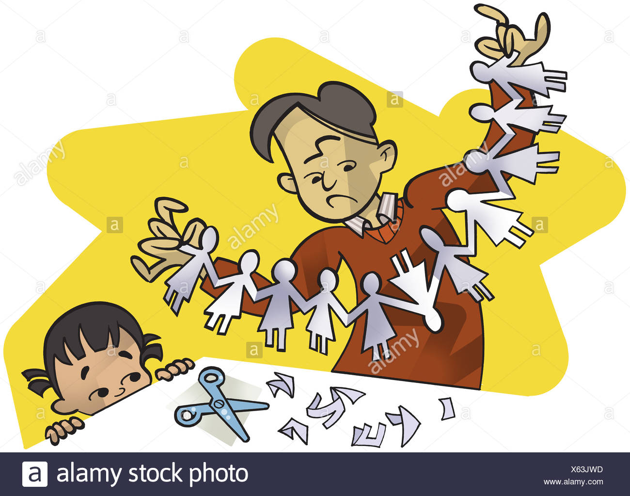 A Father Making Paper Dolls As His Daughter Watches Stock Photo