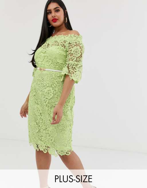 Paper Dolls Plus Bardot Crochet Dress With Fluted Sleeve In Lime Asos