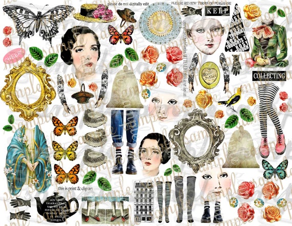 Art Tea Life Cheers Paper Dolls Collage Sheet Digital File Etsy