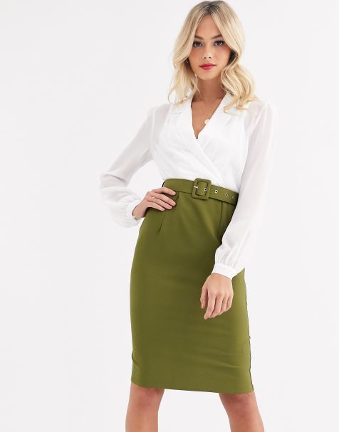 Paper Dolls Pencil Dress With Belt Green With Images Dresses