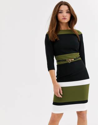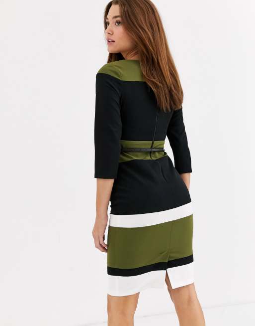 Paper Dolls Chia Khaki Colour Block Belted Pencil Dress Paper