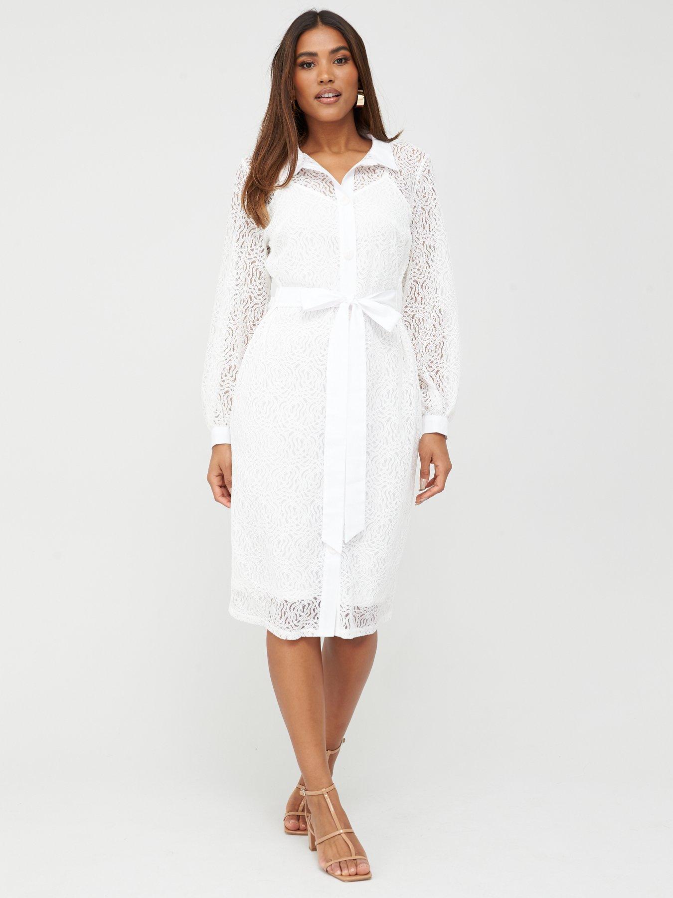 Shop Women Shirt Dress Lace Midi