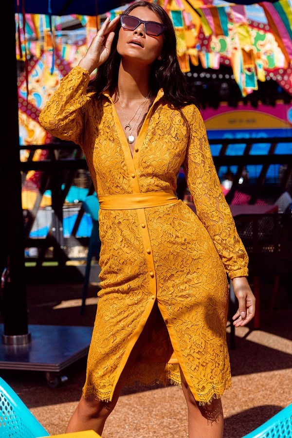 Mustard Yellow Lace Dress Fashion Dresses