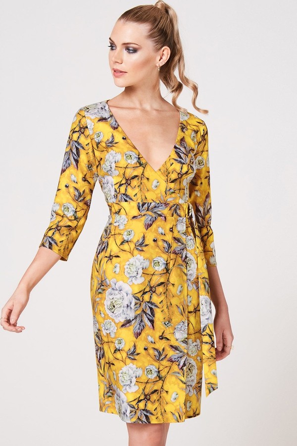 Paper Dolls Kato Mustard Floral Print Wrap Dress Printed Wrap