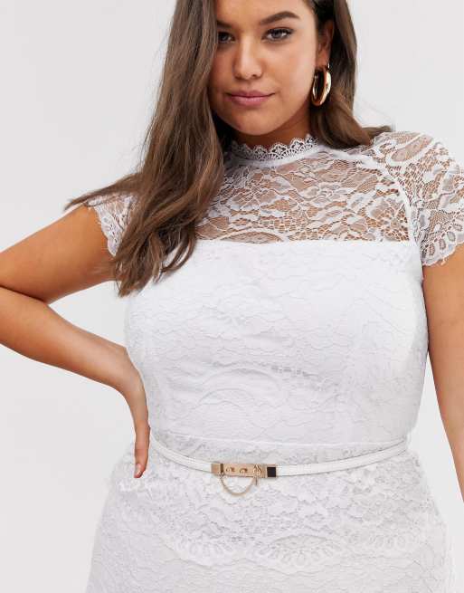 Paper Dolls Plus Peplum Midi Lace Dress With Belt In White Asos